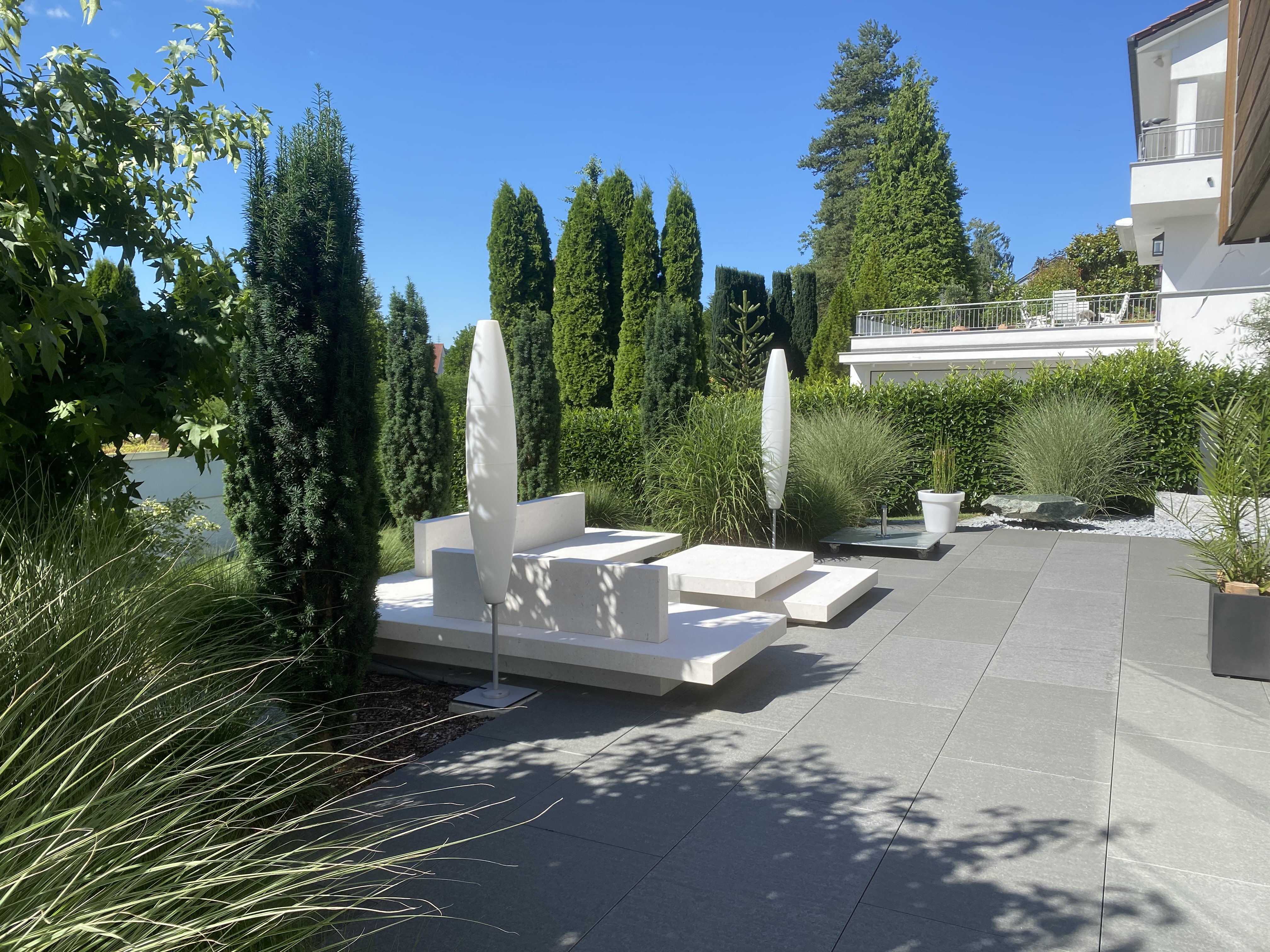 Bei der Gestaltung von Terrassen geht es uns darum, Ihren Außenbereich in einen privaten Rückzugsort zu verwandeln. Bei der Terrassengestaltung stehen Ihnen verschiedene Materialien zur Auswahl, damit Sie den perfekten Look finden. Eine durchdachte Bepflanzung schafft eine harmonische Verbindung zur Natur, die weit über das Ästhetische hinausgeht. Ihre Terrasse ist nicht nur ein Ort zum Verweilen, sondern auch eine Oase der Entspannung und des Genusses. Gerne unterstützen wir Sie bei der Umsetzung Ihres neuen Terrassentraums.